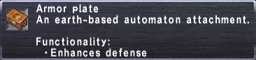 Statistics[]Armor plate An earth-based automaton attachment. Stackable: 12