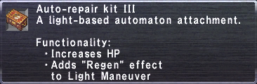 - Automaton Effect: Max HP, Light Maneuver Effect: Adds Regen