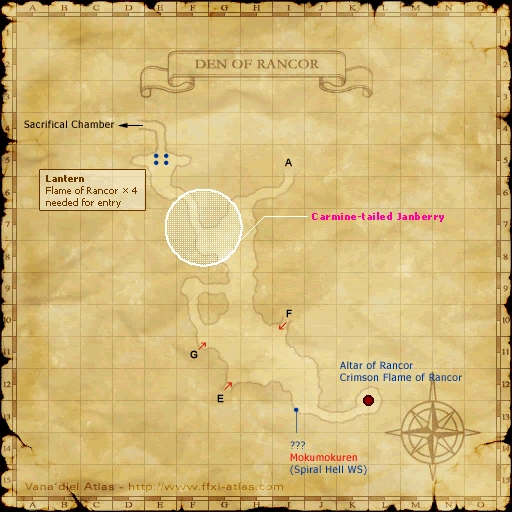 - Lottery Spawn from the two Tonberry Imprecators that are around G-8 to H-9 (not the ones that spawns at F-9 or H-7), although the NM spawns around E-5 to G-8. Has taken up to 4 hours to spawn.