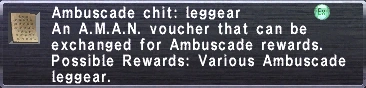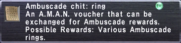 Successful completion of an Ambuscade battlefield rewards two forms of currency: Hallmarks and Gallantry. Amounts earned vary between Volumes 1 and 2 and with the selected difficulty level. Gallantry earned further varies with the total number of party members, excluding Trusts. Solo players do not earn Gallantry. Using an