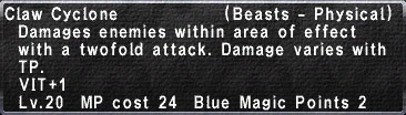 - Damages enemies within area of effect with a twofold attack. Damage varies with TP.