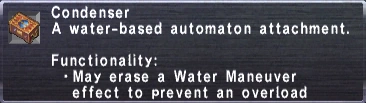 - If a water maneuver is about to be cycled out (due to a fourth maneuver use), the condenser will remove it to prevent an overload of the new third maneuver if it would cause an overload, so long as the new one is not water as stated above.