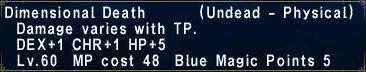 Spell cost: 48 Monster Type: Undead Spell Type: Physical (Blunt) Blue Magic Points: 5 Stat Bonus: DEX+1, CHR+1, HP+5 Jobs: