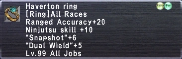 Can be upgraded to Haverton Ring +1 after completing all objectives of The Ygnas Directive