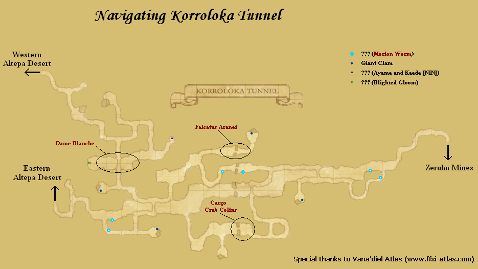- Your first step is to go to Norg and speak with Ryoma (H-8). Now, go to Port Bastok and enter Warehouse #2. Talk to Kagetora, who sends you to see Ensetsu at I-5. At this point, get a high’ish-level friend, and then head to Eastern Altepa Desert, in the little nook at H-5. Kill the spider to prevent any links, then prepare to fight. Touch the ??? when you're ready. You will fight two notorious monster spiders. These are both approximately Lv.42, cannot be slept, and cannot be charmed. They have a fairly large amount of HP, and have an attack effect of poison that hurts you for 20 HP per tic. Once you've defeated them both, touch the ??? again to receive a key item. Bring the item to Ryoma in Norg to complete your quest and acquire your two weapons. Congratulations!