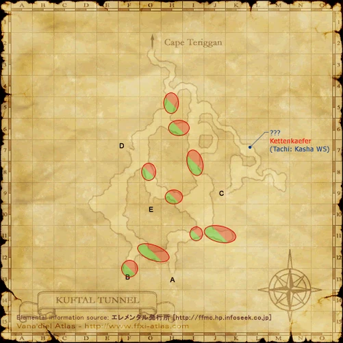 This tunnel connects the Western Altepa Desert section of Zepwell Island with Cape Teriggan. This maze of underground passageways can lead adventurers in circles, only to look up in horror as giant monsters such as Guivre look down on them with glee. ![]() | ||||||||||||||||||||||||||||||||||