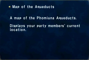 A map of the Phomiuna Aqueducts. Displays your party members' current location.