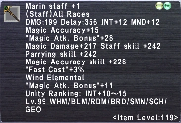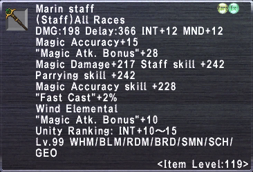 DMG: 198 Delay: 366 INT +12 MND +12