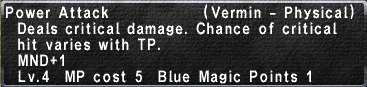 - Deals critical damage. Chance of critical hit varies with TP.