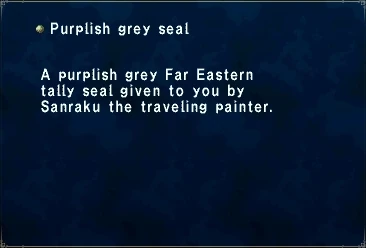 A purplish grey Far Eastern tally seal give to you by Sanraku the traveling painter.