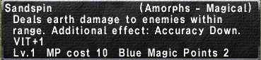 - Deals earth damage to enemies within range. Additional Effect: Accuracy Down.