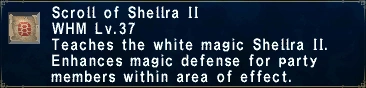 Shellra II provides 38/256 magic damage reduction (≈ -14.8%).[1]
