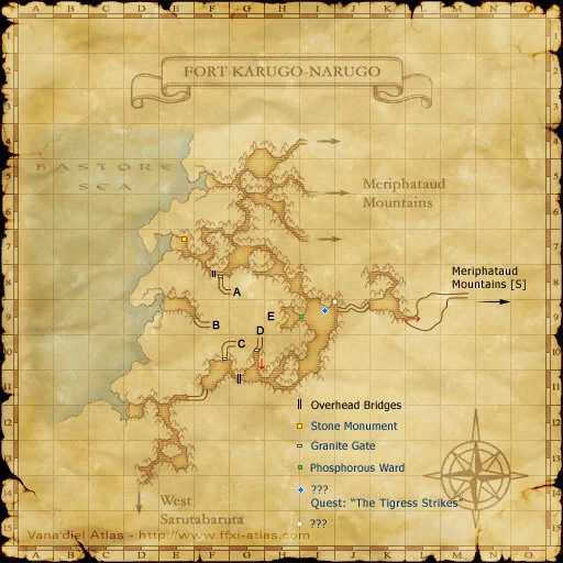 - Head to the Stone Monument at (E-7) in Fort Karugo-Narugo (S) (map 1) for a cutscene.