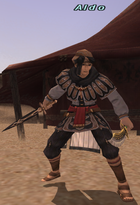 - Melees Dual Wielding 2 different daggers, but also has Marksmanship ranged skill with a gun which uses the Coffinmaker model.