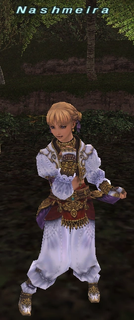 - Her main job appears to be Puppetmaster: if her job combination were MNK/WHM, then the HP difference between Trust: Nashmeira and Trust: Naja Salaheem, a MNK/WAR, would not be so massive. Trust: Nashmeira does not have Max HP Boost.