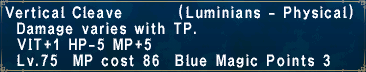 Stat Bonus : VIT +1 HP -5 MP +5