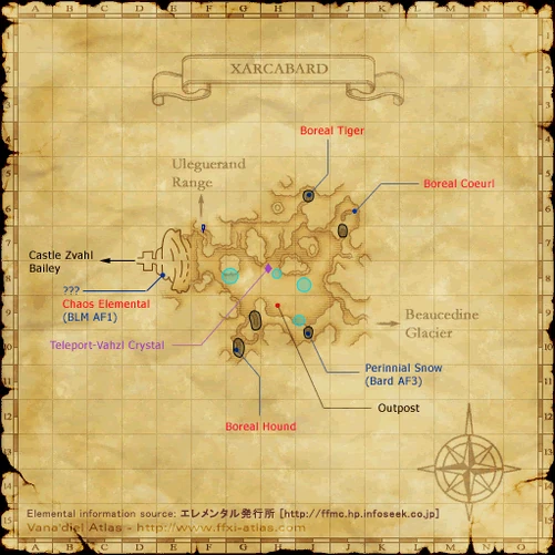 A frozen valley located in southern Valdeaunia. The sheer cliffs of the valley approach a bottleneck ending with the castle Zvahl. The beastman forces blockaded themselves here at the end of the Great War, after the Allied Forces of Altana switched to the offensive. As the Allied Forces did not get out of this valley easily, due to mass casualties, it made temporary withdrawal unavoidable. ![]() Chronicles of Vana'diel - Time Lapse - Xarcabard | ||||||||||||||||||||||||||||||||||