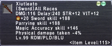DMG: 116 Delay: 240 STR +12 VIT +12